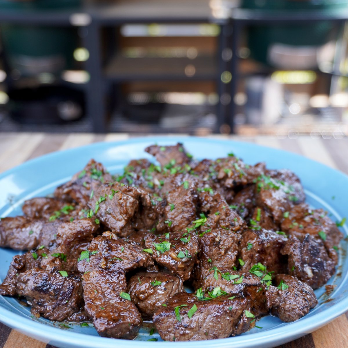 This garlic steak bites recipe is very QUICK and EASY to make. I used my griddle but a regular grill set for direct heat will work just fine.