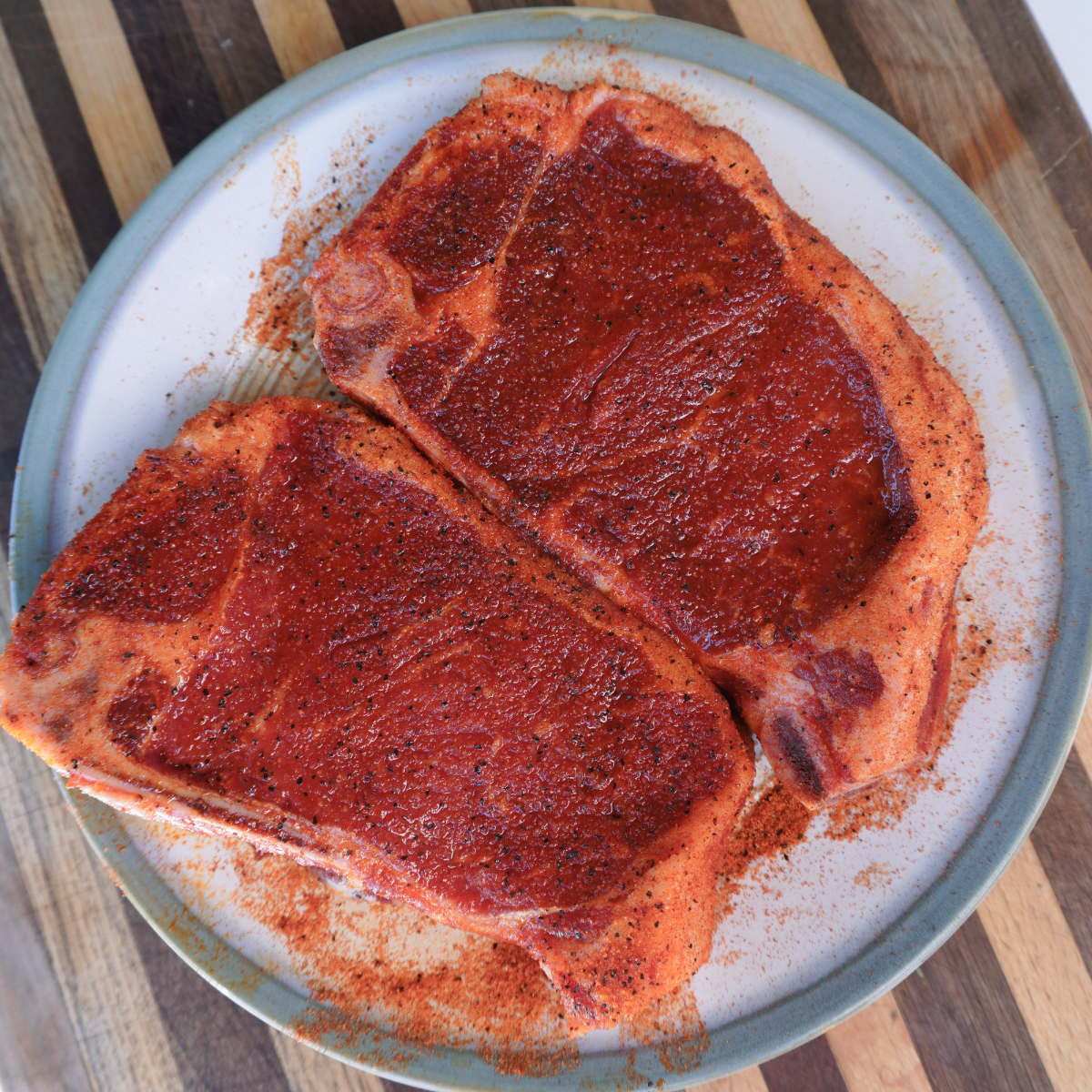 - Get the steak to room temperature. Season all sides with Dad's All Purpose rub. Set aside.