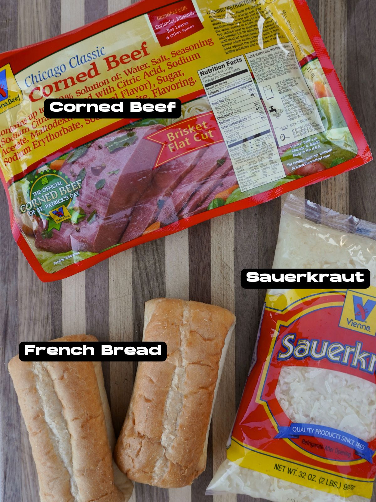 - Grab some french rolls, place cheese first and fill them to the top with that delicious smoked and shredded corned beef. Top off with sauerkraut, mustard, slice it in half and serve!